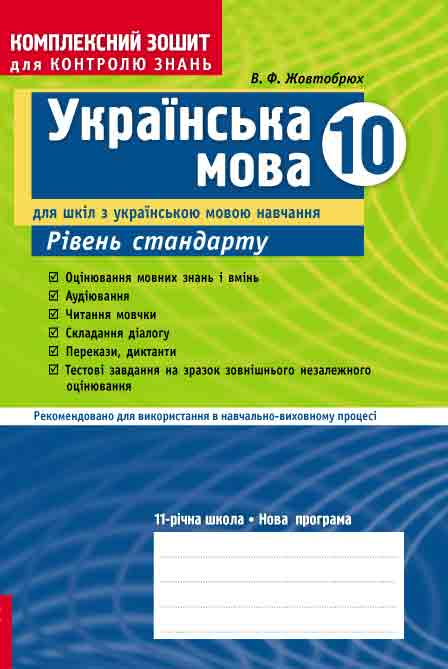 Комплексний зошит для контролю знань Українська мова 10 клас (Укр) для української школи Рівень стандарту Нова програма Ранок Ф10620У (9786115402854) (106734)