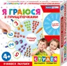 У наборі: двостороннє поле, картки, прищіпочки, книжечка з іграми.