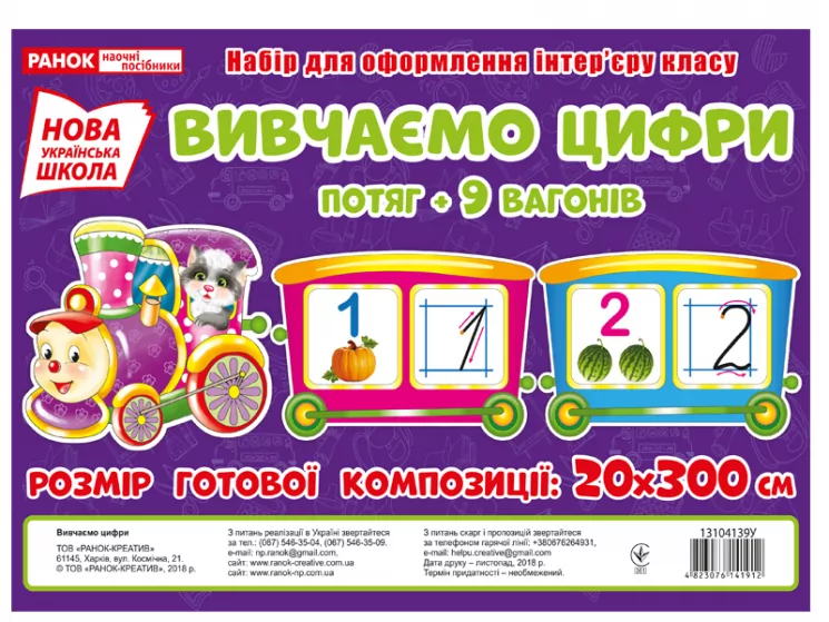 НУШ Вивчаємо цифри. Потяг. Набір для оформлення інтер'єру Ранок (13104139У) (4823076141912) (307831)