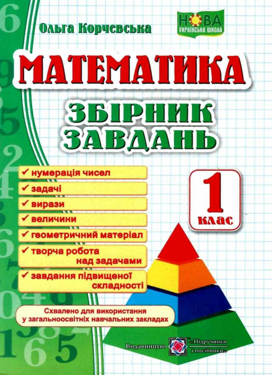 Посібник укладеноза Типовими навчальними програмами НУШ для закладів загальної середньої освітита підручників з математики для 1 класу. Він містить завдання арифметичного, алгебраїчного й геометричного змісту; завдання, пов’язані з величинами; текстові задачі та творчі завдання.