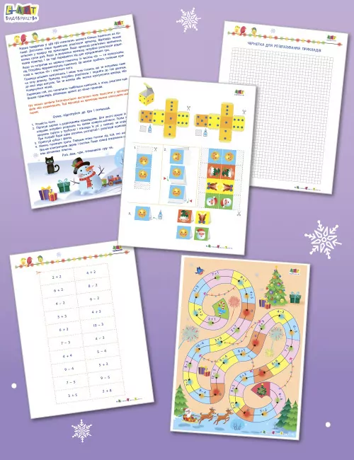 Це гра-ходилка з прикладами, у якій потрібно запалити якомога більше “лампочок”. Для цього потрібно правильно розв’язати приклади. Але будьте уважними, гірлянда місцями заплуталась. Переможе той, хто “запалить” найбільше лампочок, а отже, розв’яже найбільше прикладів, дійшовши до кінця гірлянди. Усі приклади підібрані з урахуванням шкільної програми за 1 клас. Гру можна зробити багаторазовою: помістити гральне поле у прозорий файлик або заламінувати. Тоді відповіді можна записувати маркером.
