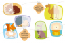 - шукаючи відповідну наліпку,розвивати дрібну моторику й охайність, акуратно приклеюючи половинку.