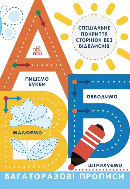 Серія «Багаторазові прописи» — це, у першу чергу, яскраві ігрові зошити. Але завдяки ним малюк із легкістю та задоволенням засвоїть такі потрібні навики написання літер та цифр і штрихування, навчиться логічно мислити та орієнтуватися в просторі. Їх особливість у спеціальному покритті, що робить можливим витирати написане і писати наново безліч разів. Матові сторінки не відблискують і бережуть дитячий зір, а під час писання фломастером дитяча ручка не втомлюється від натискання..