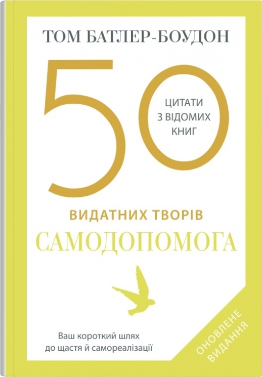 Написано тисячі книг із самодопомоги й особистісного розвитку, й кожна з них розкриває секрет успіху, самореалізації та щастя: як здобувати друзів і впливати на людей або розбудити в собі велетня. Том Батлер-Боудон проробив величезну роботу, щоб донести до нас основні ідеї та методи з «літератури про можливості». 50 розглянутих у цій книзі класичних творів — від давніх учень Будди і Лао-цзи й праць Бенджаміна Франкліна та Семюела Смайлза з формування характеру до сучасних бестселерів, як-от «Емоційний інтелект», «7 звичок надзвичайно ефективних людей», «Принцип 80/20» — являють собою найкраще з того, що стало відомим тільки від початку ХХ століття як «самодопомога»