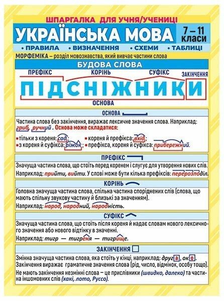 Українська мова 7-11 клас. Шпаргалка (Укр) Ранок (4827577978985) (516962)