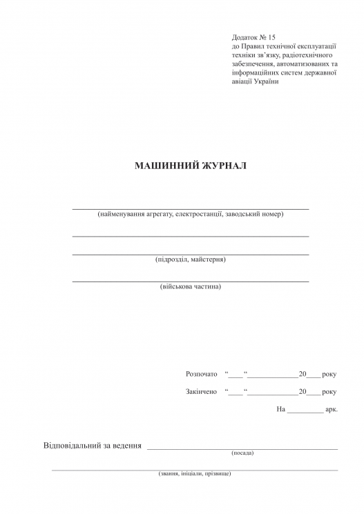 Машинний журнал. Додаток № 15. А4 формат. 64 сторінок. 32 аркуша, м'яка обкладинка
