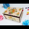 Оригінальна подарункова скринька виконана з дерева в Петриківському стилі. З цим набором дитина оволодіє технікою розпису і створить своїми руками чудову скриньку, яку можна використовувати для зберігання дрібних прикрас і коштовностей, а також сережок, перснів і брошок.